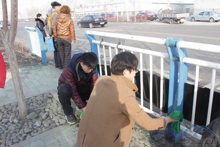 經(jīng)過一個(gè)冬天的風(fēng)雪和春季融雪后形成的泥水,車站附屬構(gòu)筑物表面一層污濁,“文明交通”和“講文明樹新風(fēng)”的公益廣告牌也不再鮮亮。志愿者們不怕臟不怕冷,細(xì)心擦洗車站護(hù)欄,不一會(huì)兒,污濁的欄桿在陽光下漸漸顯現(xiàn)了“真身”。 過往車站的公交車輛也主動(dòng)避讓志愿者,周邊候車的乘客紛紛投來贊許的目光。